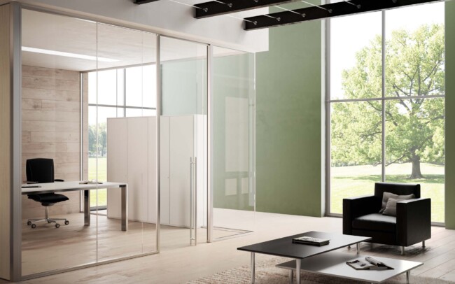 Modular partition walls, designed to optimize the division of spaces. Made of glass or with blind panels with a customized of finish.