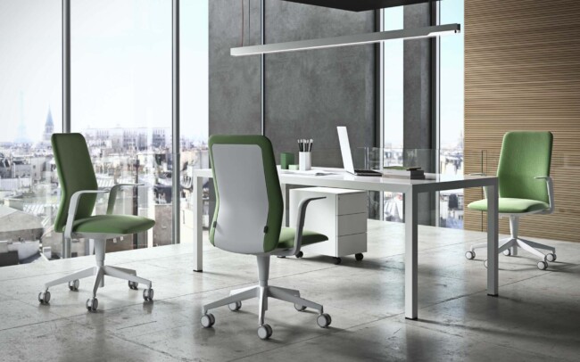 Adjustable and flexible, with and without armrests, to improve the worker well being thanks to ergonomics. Resistant and certified materials.