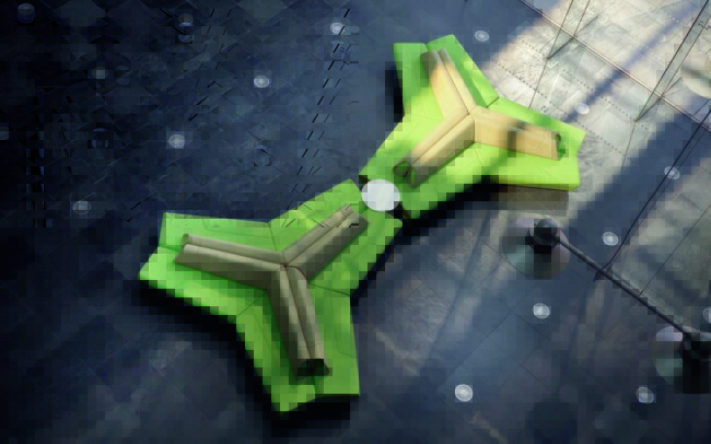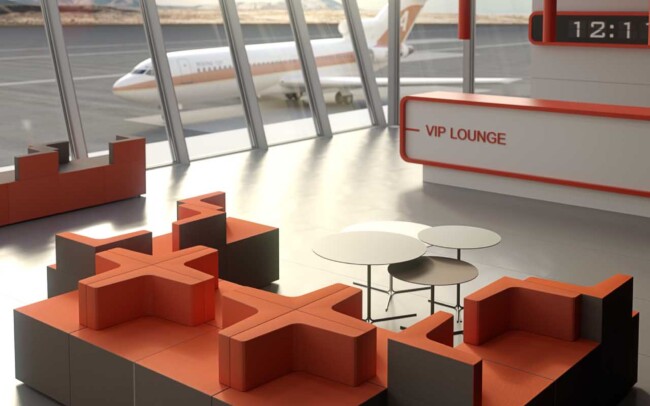 Reception counter, digital reception, video wall, monitor touch, armchairs and chairs, lighting, coat hangers and baskets, curtains, umbrella stands, magazine racks, air purifier.