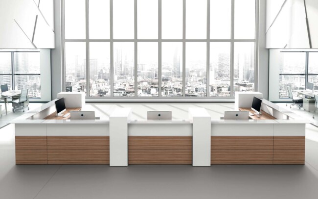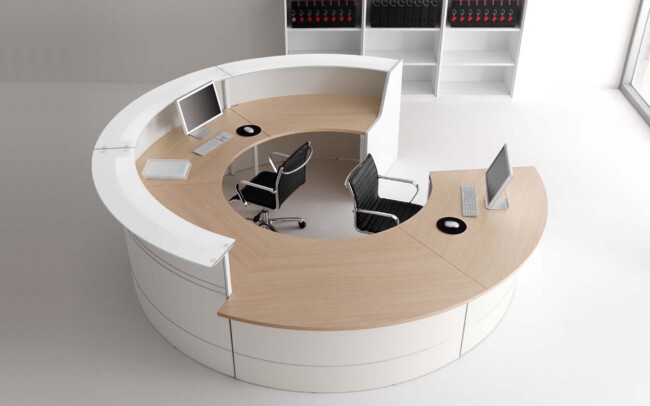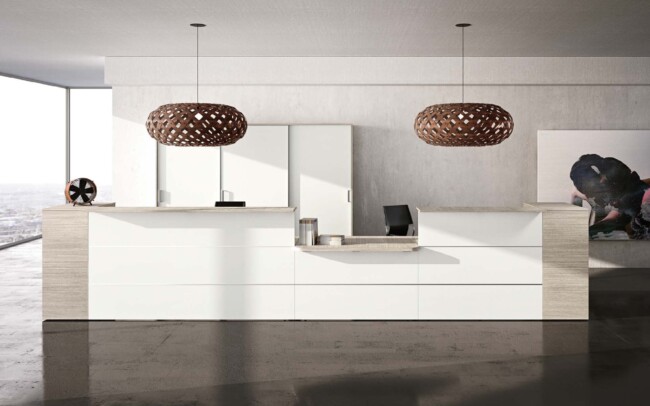 Reception counters made for every style and design. Realizations are customized with different and particular materials and shapes.