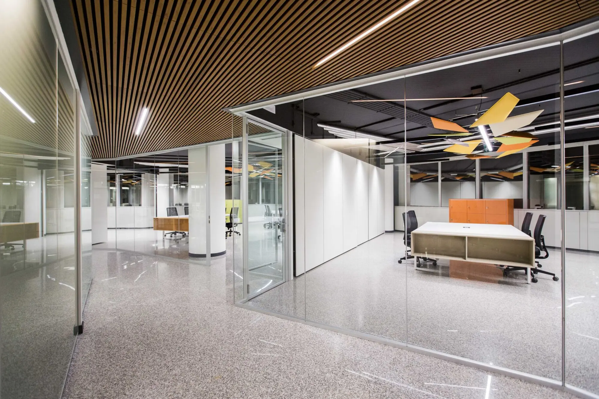 - Suddivisione degli spazi per creare ambienti dedicati al coworking e alla formazione grazie a pareti divisorie manovrabili e pareti vetrate miste posizionate nell’ampio openspace luminoso