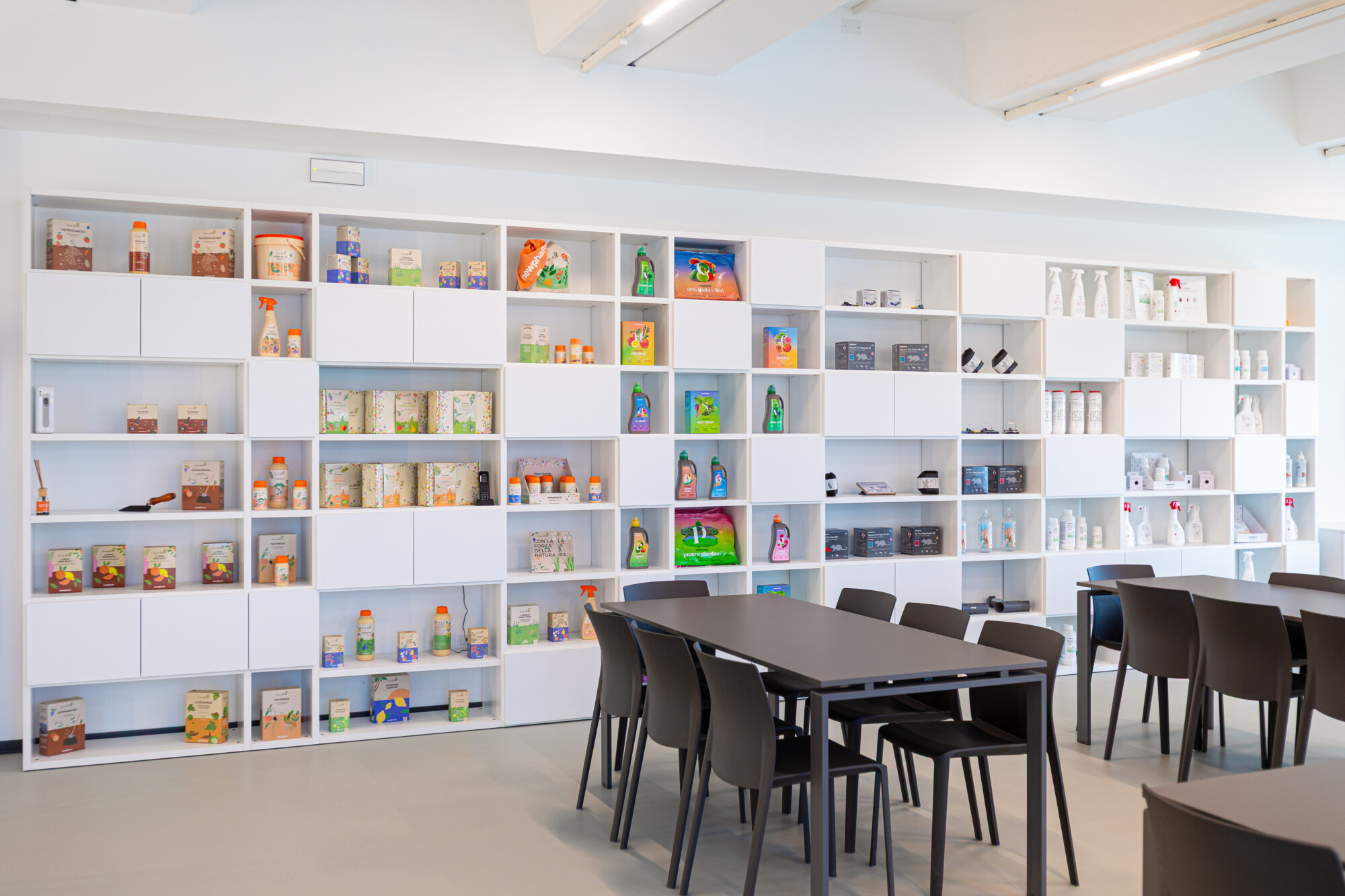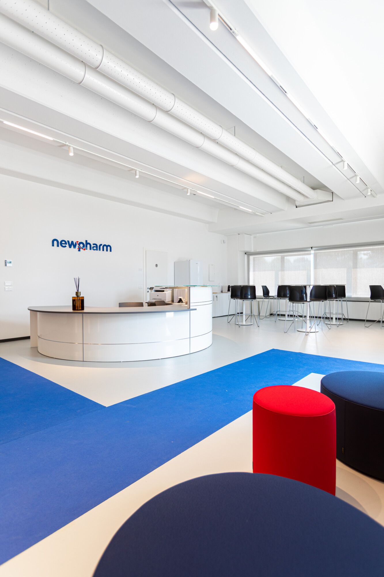 Per Newpharm SRL ci siamo occupati del completo rifacimento degli spazi di accoglienza, formazione e condivisione, con un progetto di arredamento per ufficio che combina estetica, funzionalità e benessere.